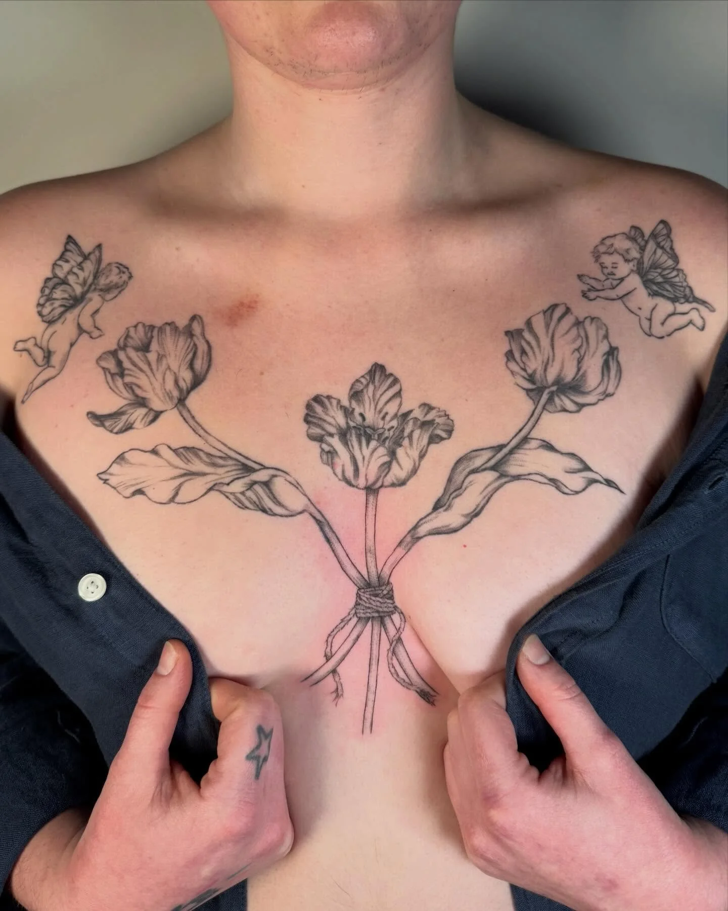 “I absolutely love the tattoos that Genevieve has given me! They are so cute, and we talked in such detail about the placement before she started tattooing. She even molded one of her tattoos to fit around some other ones I had, making sure I was super comfortable with how it looked before we started.