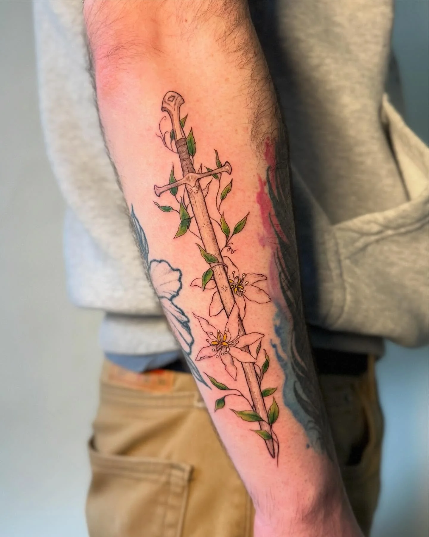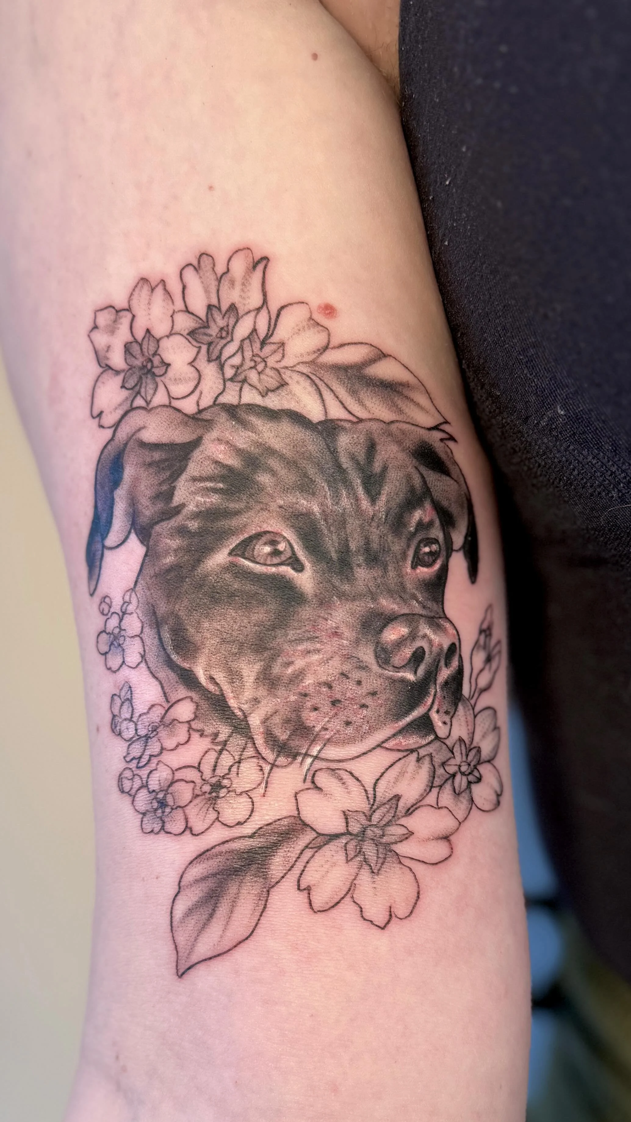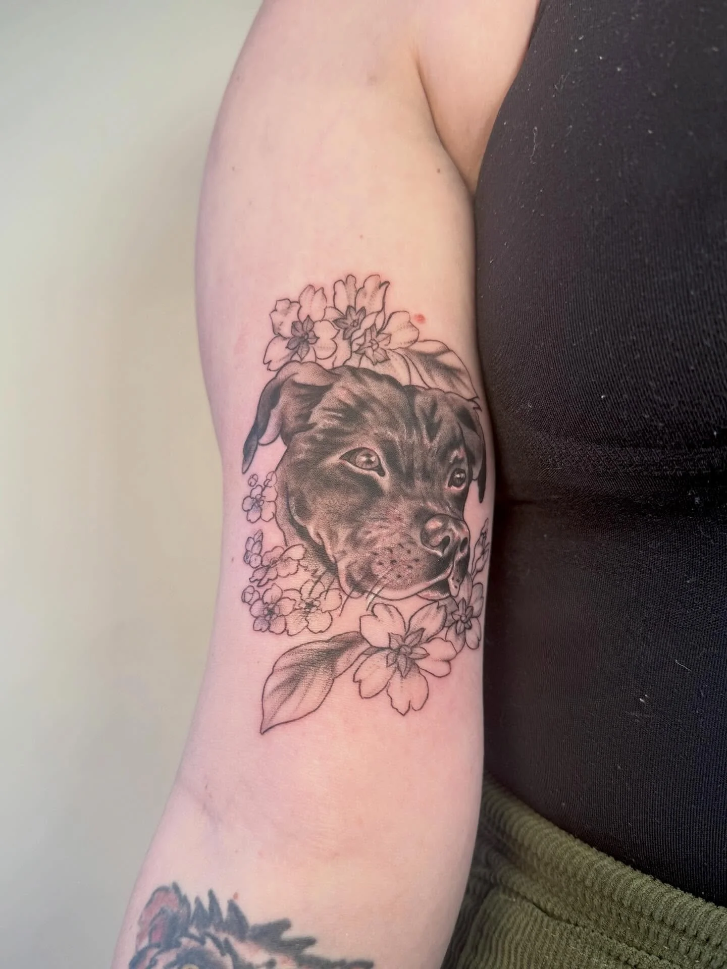I love how her tattoo flows around my others and it’s been really inspiring me to put more tats around it to match! Thank you so much again for a wonderful tattoo experience!”